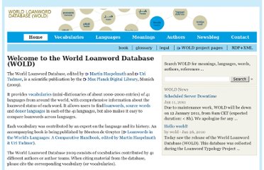 Feb 17, 2010 . The World Loanword Database (WOLD, http://wold.livingsources.org/), edited by Martin Haspelmath and Uri Tadmor and published by the Max .